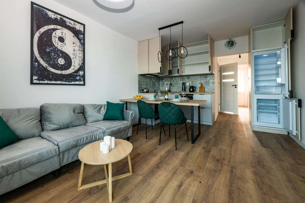| Wyposażenie | zmywarka, lodówka, piekarnik, płyta idnukcyjna, pralka |